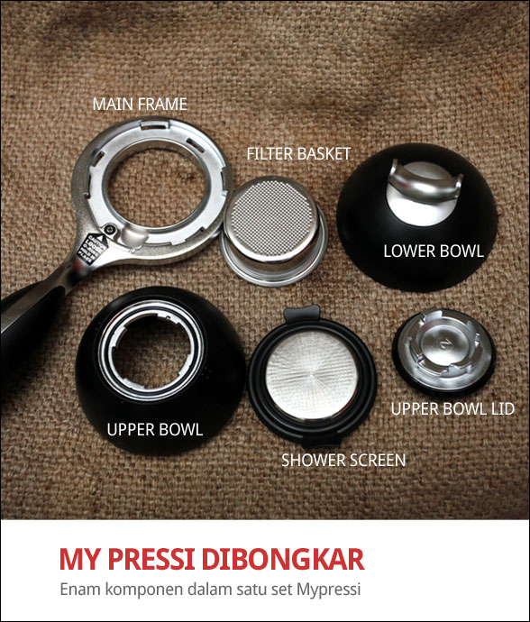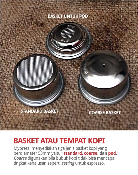 - Perlu grinder ? Idealnya iya, tapi Mypressi menyediakan basket pressurized yang bisa digunakan untuk kopi yang bubuk atau mesh-nya terlalu kasar (coarse) untuk setting espresso.