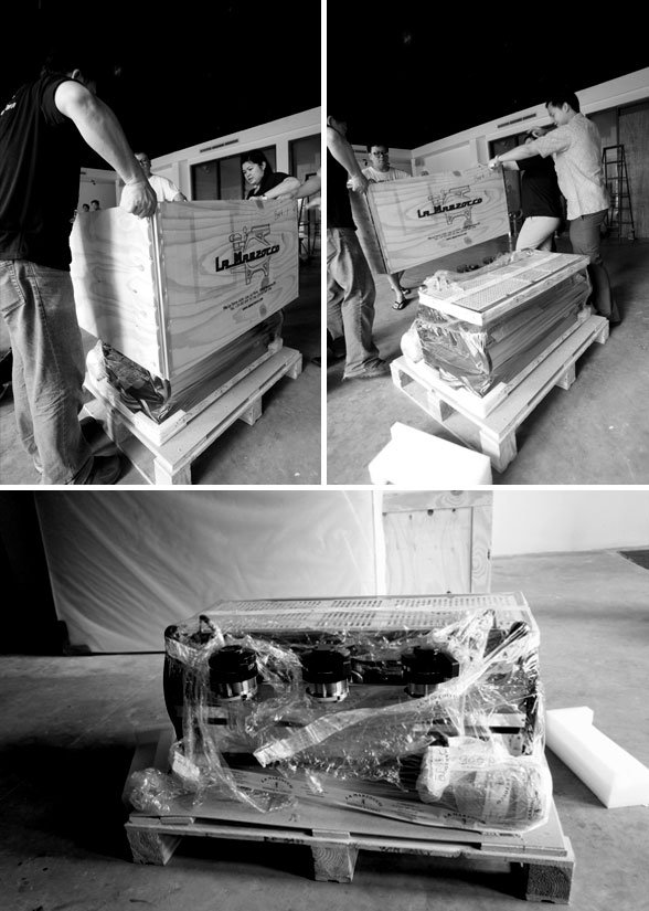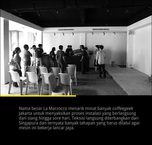 Image 4: Big names like La Marzocco attracted the Jakarta coffegeeks during its installation process that lasted from noon until late afternoon. Field technicians were flown in from Singapore and there were many stages to go through in order to have this machine operates smoothly.