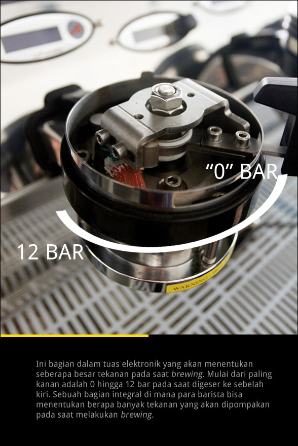 This is the inner part of the electronic lever that will determine the amount of pressure during brewing. The furthest on the right is 0 and it goes up to 12 bar when it is shifted to the left. An integral part where the baristas can determine how much pressure must be pumped while brewing.