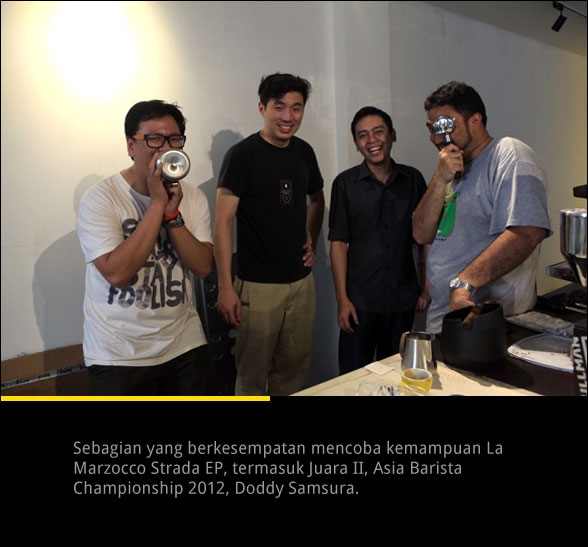 Image 9: Some of the privileged people who got to experience La Marzocco Strada EP hands on, including the Asia Barista 2012 Runner Up Champion – Doddy Samsura.