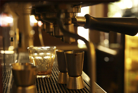 Mesin espresso, menggunakan merek La Pavoni dua group.