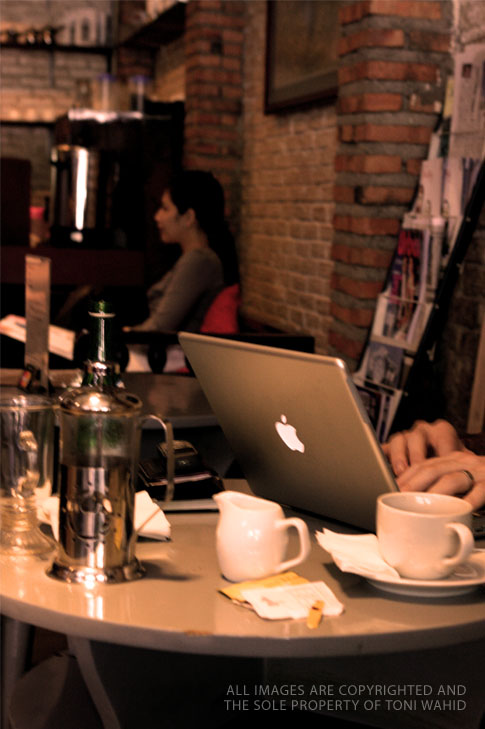 Saya melihat pengunjung datang silih berganti, sebagian memesan take away, selebihnya memilih untuk dinikmati di dalam cafe yang suasanya memang cozy ini. Beberapa orang asyik dengan pertemuan dengan rekan bisnisnya, sebagian tenggelam dengan komputer jinjing tentu dengan segelas kopi di meja masing2.