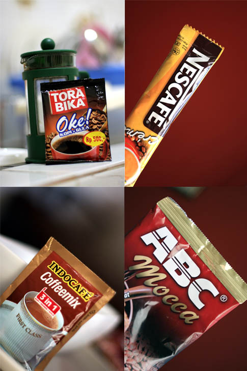 Akrab kan dengan merek-merek kopi di atas ? Dengan kisaran harga 500 hingga 2000 rupiah kita bisa menikmati segelas kopi dari berbagai produsen yang bisa disajikan secara cepat. Hanya perlu segelas air panas, maka jadilah segelas kopi yang siap untuk dinikmati. Para produsen kopi memang jeli melihat pangsa pasar para peminum kopi yang menginginkan kepraktisan, harga yang terjangkau, dan ditujukan bagi siapa saja yang tidak ingin direpotkan dengan berbagai ritual seperti pembuatan espresso.