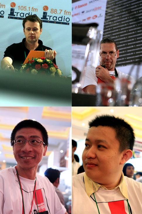 Para juri, kiri atas Peter dari Caswells, head judge dari Australia – dua di bawah adalah sesepuh kopi Indonesia, Andri dan David (Henry tidak terlihat dalam foto karena harus menjadi juri). Saya belajar banyak dari beliau2 itu.