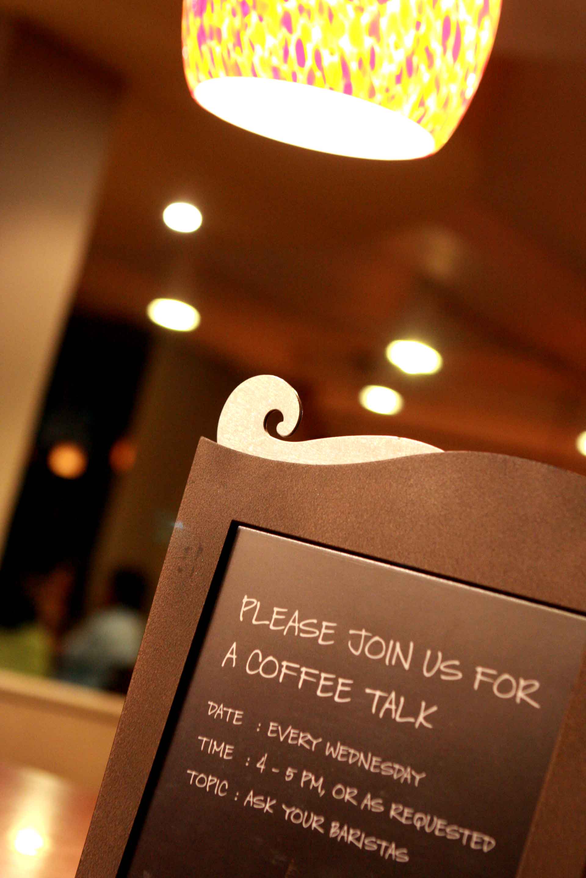 Ini acara rutin setiap Rabu sore yang diadakan di gerai2 Starbucks dimana para penggemar kopi dapat melakukan tes kopi beserta cara menguji cita rasa sekaligus berinteraksi secara langsung dengan Barista atau coffee master mereka tentang cara penyajian kopi agar hasilnya maksimal. Tertarik ?
