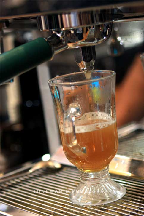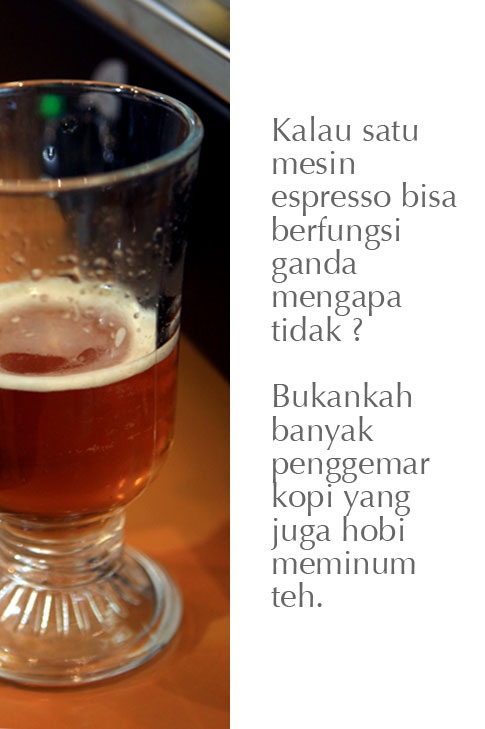 Saya pernah mencoba teh yang disajikan dengan mesin ini dan mencoba mencicipi rasanya sebagai sebuah pengalaman unik. Anda harus mencoba sendiri untuk membuktikan bagaimana intensitas aroma dan body dari teh yang disajikan dengan mesin espresso.