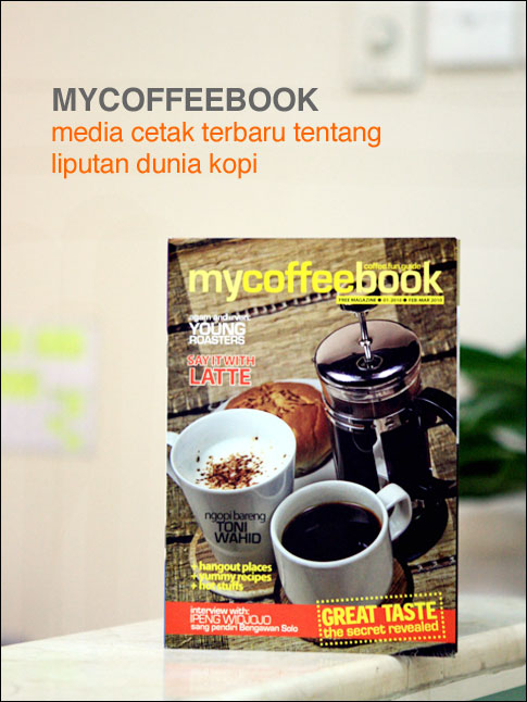 Saya benar2 tidak tahu berapa banyak jumlah majalah atau media cetak yang mengkhusususkan isinya tentang dunia kopi. Boleh jadi nihil, kalaupun ada mungkin hanya dijadikan sebagai sisipan dalam sebuah artikel media food and beverage, atau sekedar liputan gaya hidup. Terbitnya majalah Mycoffeebook yang isinya tentang keragaman dunia kopi sungguh menggembirakan. Isinya berkisar tentang liputan peralatan kopi, orang-orang yang berada di balik cafe sukses seperti Anomali dan Bengawan Solo Cafe, resep kopi, profil barista, dan anda harus memilikinya untuk mengetahui lebih bayak tentang isinya