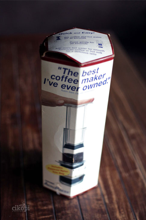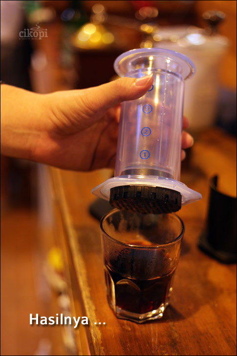 Saya belum menemukan penjual alat seduh kopi AeroPress di Indonesia, tapi bila anda berminat bisa dibeli di negera tetangga Singapura yang menjualnya sekitar 350 ribu. Alat ini kepunyaan David Tanuwijaya dari Java Dancer yang kami jajal bersama dengan rekan Tjiam Charles saat perjalan ke Malang beberapa waktu yang lalu. Diciptakan oleh penemunya Alan Adler sejak tahun 2005 yag lalu dan Aeropress langsung melejit menjadi salah satu alternatif alat ngopi yang banyak dicari di Amerika karena faktor harga dan kinerja yang tidak mengecewakan.