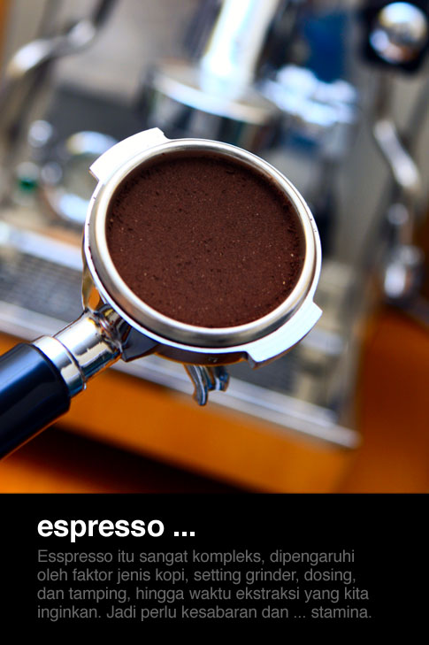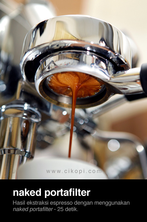 Saya aduk itu kopi di porta biar bener bener free dari clumping, namanya WDT [ Weiss Distribution Technique ], kalau pakai bottomless portafilter sedikit salah aja bakal ketahuan, mulai dari cone nya tidak tepat di tengah, chanelling, uneven extraction, donut extraction, etc…