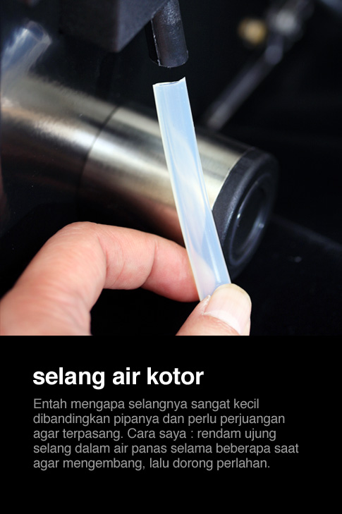 - Selang plastik pembuangan air susah terpasang, perlu kesabaran …. sangat.