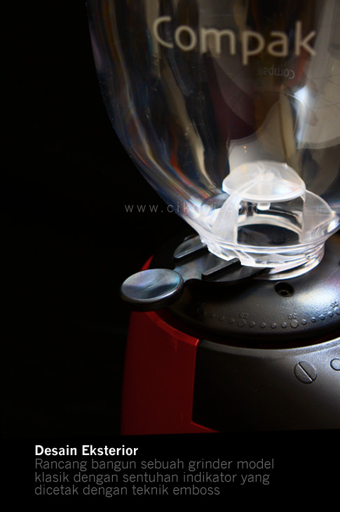 Kalau masih beranggapan grinder tidak seksi, anda harus melihat galeri fotonya di bawah ini. Desain khas Eropa yang mengandalkan garis stream line, dan aksentuasi dua warna menjadikan Compak salah satu pilihan untuk mendampingi mesin espresso.
