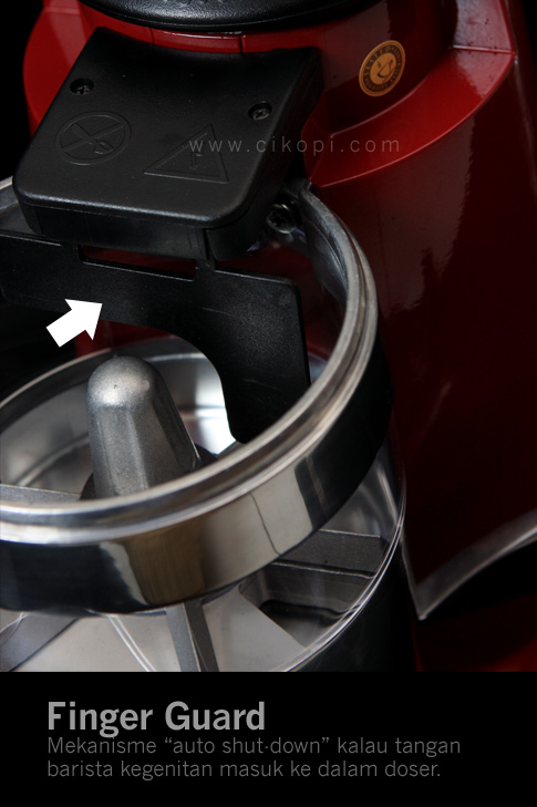 Karena tidak tahu apa yang harus dilakukan, setelah memasukan kopi secukupnya, mesin pun dinyalakan. Suara burr yang berputar memang terdengar, tapi koq itu kopi gak nongol di doser ? Sepertinya ada yang salah dan sambil berpikir tiba-tiba saya teringat kasus Mazzer Super Jolly yang sering mogok menggiling kopi apabila setting-nya terlalu halus.