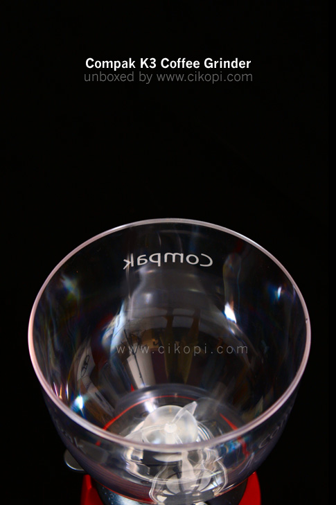 Saya menerima dua jenis warna yakni merah dan silver polished yang kesemuanya disajikan di sini. Walau terbuat dari bahan alumunium Compak K3 mempunyai berat 8.6 kg, lebih ringan dari Mazzer Mini yang 10 kg. Di Amerika dipasarkan dengan bean hopper yang lebih kecil yang hanya bisa menampung 280gr biji kopi.