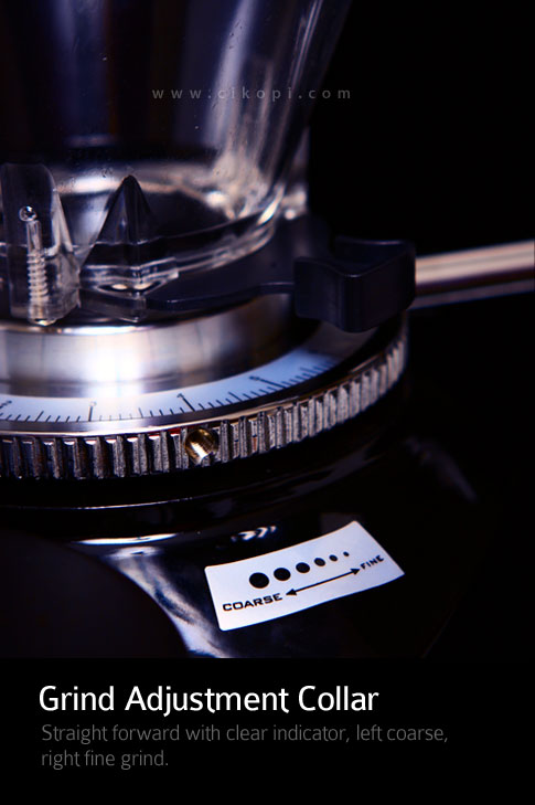 Weeks with Gino has reminded me how similar its look with Mazzer Super Jolly. While Mazzer has enjoyed highest mark in coffee grinder arena for its built quality and performance, Gino is sitting quietly especially in Indonesian coffee market. Gino has an impressive looks, materials, and even its commercial weight. The build quality is good, sturdy metal from top to bottom and important thing it can deliver consistent grind for espresso. Stepless adjustment is easy with visible indicator. The only reservation was on coffee chute extension tube which has little effect in avoiding left side coffee drop.