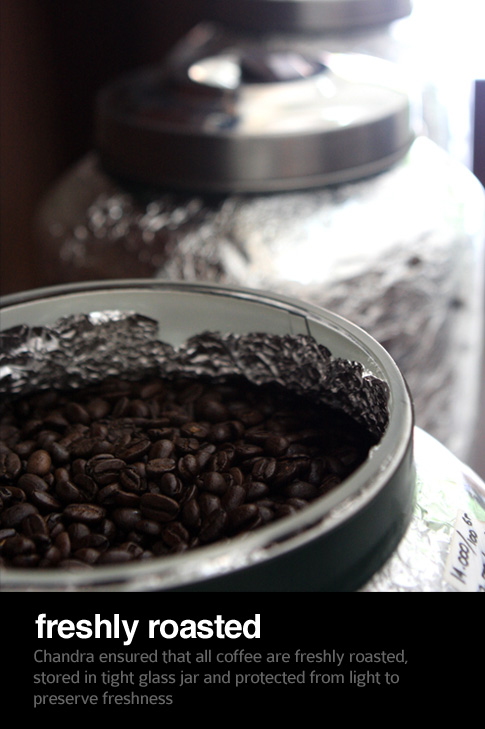Chandra Kurnia and I have been best friends since I was started my coffee blog two years ago and become my coffee companion to every visit in my hometown Bandung city. He is a few people who started coffee distribution in the largest on-line community, Kaskus identified as Shadow Lenz, his famous ID. I met him last month and introduced me to his new permanent business location in Southern part of Bandung, an area known for traffic congestion. Apart from his on-line business, Chandra is now expanding the business to serve customers in his new store as they may be able to chose coffee from various origins or blend it according to their need. Adopted the similar name, Sarang Kopi, literally means coffee nest, a distribution center for his business throughout Indonesia. Here some pictures taken during my visit.
