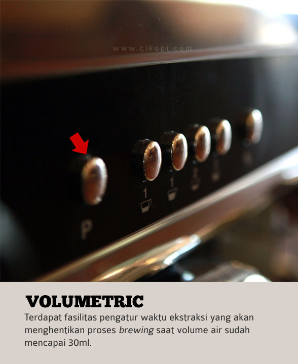 - Mengatur volumetrik sesuai dengan waktu yang diinginkan. Cukup mudah, tapi sebaiknya dilakukan pengaturan ulang secara berkala agar ekstraksi tetap konsisten.