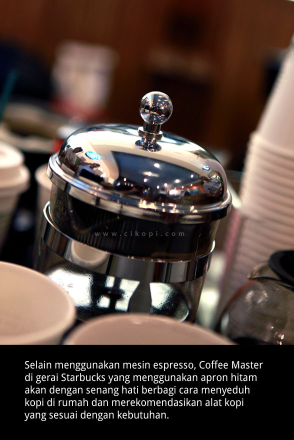 Starbucks International sudah lama bekerjasama dengan Saeco yang merilis Starbucks Barista, salah satu mesin espresso populer khususnya di Amerika. Mesin semi automatis ini sudah dihentikan peredarannya dan di Indonesia baru saja dirilis mesin terbaru keluaran Saeco Incanto (14 jutaan) dan Veneto (sekitar 8 jutaan) yang keduanya dijual di Starbucks. Mesin ini melengkapi alat kopi yang dijual oleh Starbucks seperti French Press, Moka Pot, dan Filter Kopi. Saya belum berkomentar banyak tentang mesin super automatis ini yang tidak memerlukan grinder karena digiling langsung di dalamnya. Saya masih menunggu kabar dari Saeco yang moga2 bersedia melakukan unboxing produk ini untuk para pembaca. Jadi untuk sementara, itu saja dulu update terbaru kegiatan ngopi2 saya di Starbucks Mall Grand Indonesia sore tadi.