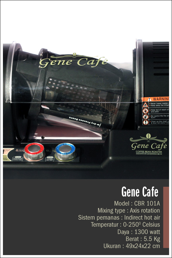 Tentu saja saya akan mencoba dengan mengurangi atau menambah temperatur serta waktu roasting seraya melihat perubahan yang terjadi. Roasting memang membuat penasaran dan semoga hasilnya akan lebih baik. (Maaf ada kesalahan tulisan Genecafe yang seharusnya di pisah Gene Cafe pada caption2 foto di bawah)