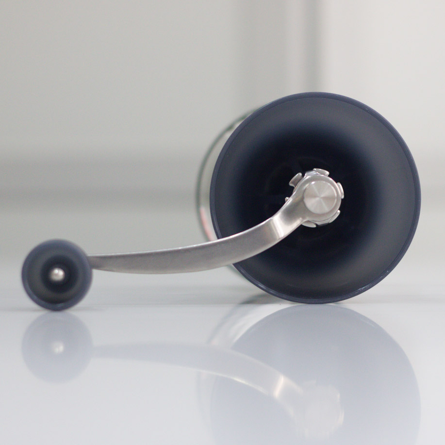 Menggunakan Skerton. Sebagaimana yang sudah saya sebutkan di atas, kini Hario telah melengkapi Skerton dengan penutup silikon untuk menghindari kopi yang tiba-tiba keluar (bouncing) saat grinder sedang dioperasikan.