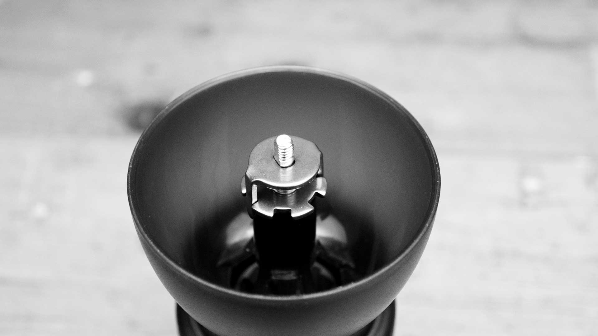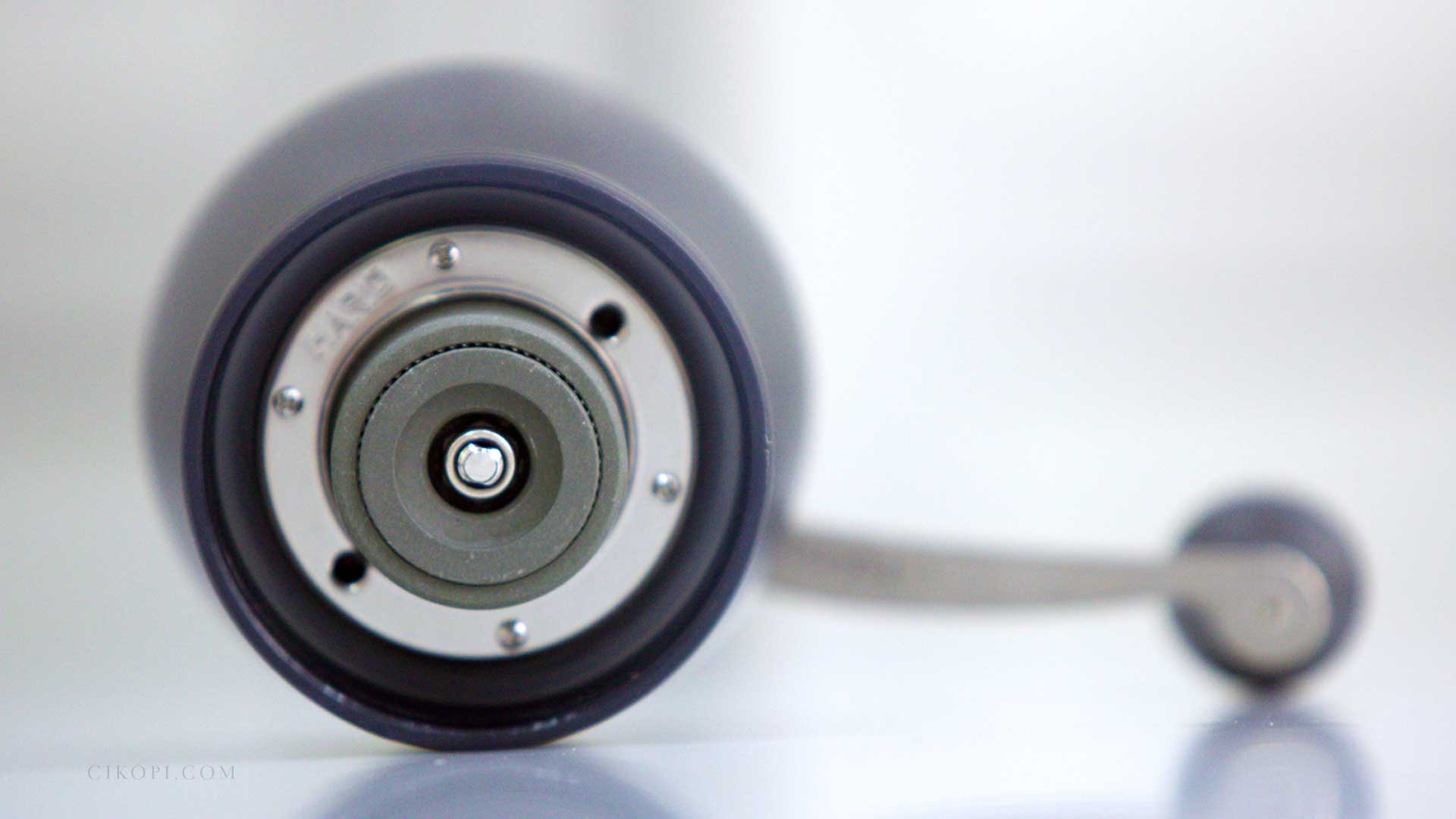 Sebelum menggunakan Skerton, cobalah dulu beberapa setting dengan memutar baut burr lalu giling dan lihat hasilnya. Lokasi baut tepat berada di bagian tengah pada urutan kedua, hingga Anda harus melepaskan dulu penguncinya, putar perlahan dan perhatikan posisi burr di bagian bawah yang akan melebar atau menutup.