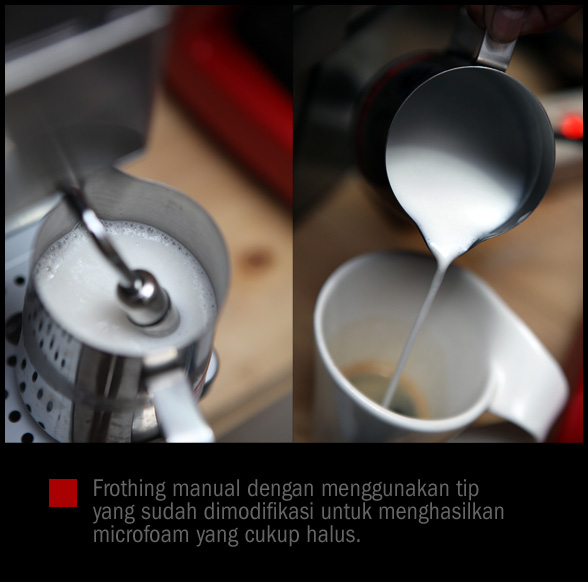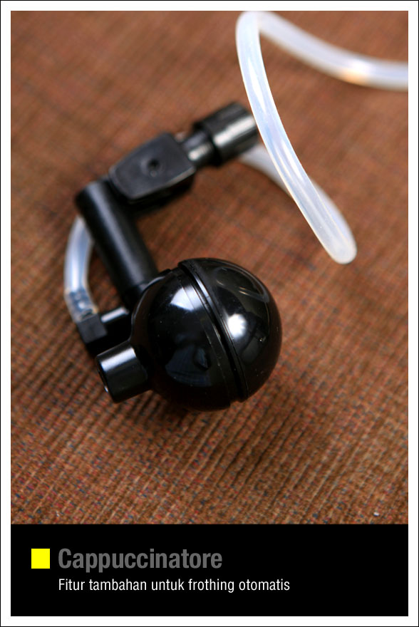 Tuas frothing seperti biasa dilengkapi dengan frothing enhancement utama yang bisa dilepas untuk digantikan dengan cappucinatore.