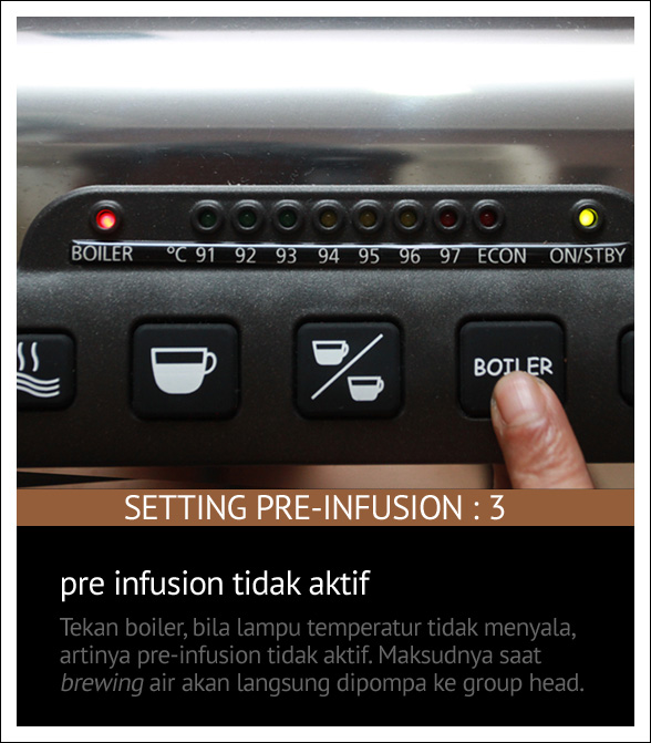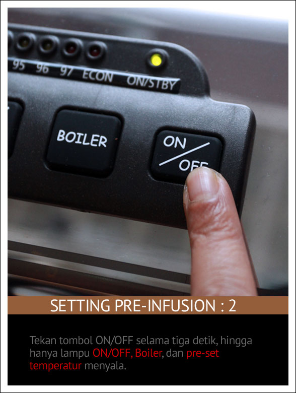 Jadi untuk melengkapi posting mengenai Vivaldi II, di bawah ini adalah cara memprogram preinfusion yang bisa diatur dari satu hingga maksimal 8 detik untuk memudahkan pembaca yang ingin mengetahui lebih lanjut fasilitas yang biasanya terdapat pada mesin2 high-end.