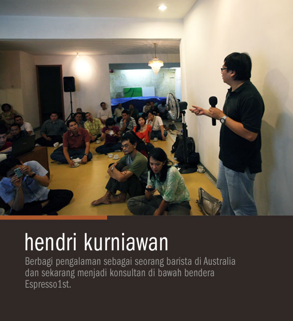 Banyak pertanyaan tentang kopi dan kesehatan, cita rasa kopi, dan bagimana menjaga kesegaran kopi. Sebagai seorang Q Grader, Adi tentu orang yang tepat menjelaskan karakateristik rasa kopi, sementara Hendri Kurniawan berbagi pengalamannya sebagai seorang barista di Australia. Agam dari Anomali Coffee juga didaulat untuk berbicara tentang roasting kopi bersama Boy dari Sebastian Coffee yang juga hadir di acara malam tadi.