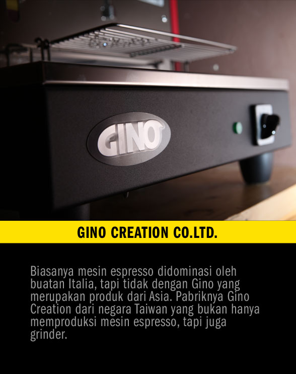Salah seorang pemilik cafe di Bandung mengatakan kepada saya bahwa alasan yang mendasarinya memilih mesin espresso merek Gino, adalah faktor harga dan kebandelan produk Taiwan ini. Menurutnya, kemudahan perawatan dan harga suku cadang yang relatif murah menjadikan mesin ini pilihan ideal untuk cafe tersebut yang saat itu baru memulai usahanya. Gino bisa jadi mesin yang kurang mendapat perhatian melalui ulasan di internet, tapi produk yang diproduksi oleh perusahaan Gino Creation Co.ltd. sudah cukup banyak digunakan khususnya untuk tipe dua group oleh beberapa cafe di Jakarta dan kota-kota besar lainnya. Berikut sedikit ulasan mesin espresso Gino yang saya bedah di rumah bersama rekan Mirza Luqman.
