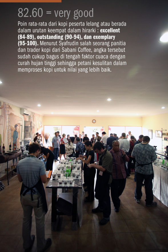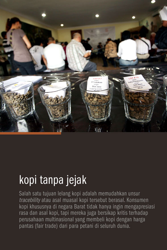 Apa yang membuat lelang kopi itu penting ? Menurut Geoff Watts dari Intelligentsia Coffee, yang datang dan menjadi juri dalam acara lelang menyatakan bahwa sebagai pembeli kopi mereka harus tahu darimana asal kopi tersebut. Hal ini penting karena mereka tidak akan melakukan proses blend atau meracik kopi dengan tanpa adanya informasi dari petani belahan dunia mana kopi tersebut berasal. Menurut Geoff yang merupakan penggemar kopi dari Toraja, traceability adalah faktor penting bagi Indonesia untuk meningkatkan daya tawar harga kopi di dunia internasional dan inilah kelemahan yang selama ini terjadi.