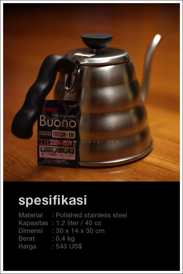 Sudah tahu kan bagaimana Hario Glass, perusahaan Jepang ini terkenal karena kualitas, presisi, dan desain produk2nya yang begitu menawan. Sesuai dengan namanya V60 Drip Kettle, Hario memang membuat teko ini untuk keperluan drip coffee dan sudah banyak digunakan di coffee shops.
