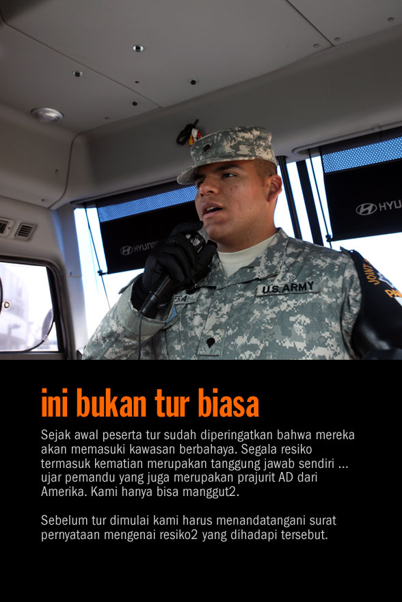 Sekitar 90 menit rombongan sudah mulai memasuki Pan Mun Jom, daerah terakhir di sebelah Utara Korsel. Beberapa kilometer sebelum memasuki DMZ sudah mulai terasa atmosfir ketegangan dimana para tentara Korsel melakukan barikade dan terakhir seorang tentara Amerika memeriksa identitas setiap peserta. Bis belum dizinkan jalan dan harus menunggu izin untuk mulai masuk pagar JSA (Joint Security Area). Kemudian seluruh peserta dikumpulkan di sebuah ruangan dan dilakukan penjelasan oleh petugs mengeni DMZ termasuk sejarah dan beberapa insiden berdarah yang terjadi selama ini. Setelah itu kami diminta untuk menandatangani pernyataan bahwa segala hal yang diakibatkan oleh tur ini termasuk kemungkina cidera hingga kematian merupakan tanggung jawab sendiri. Baiklah.