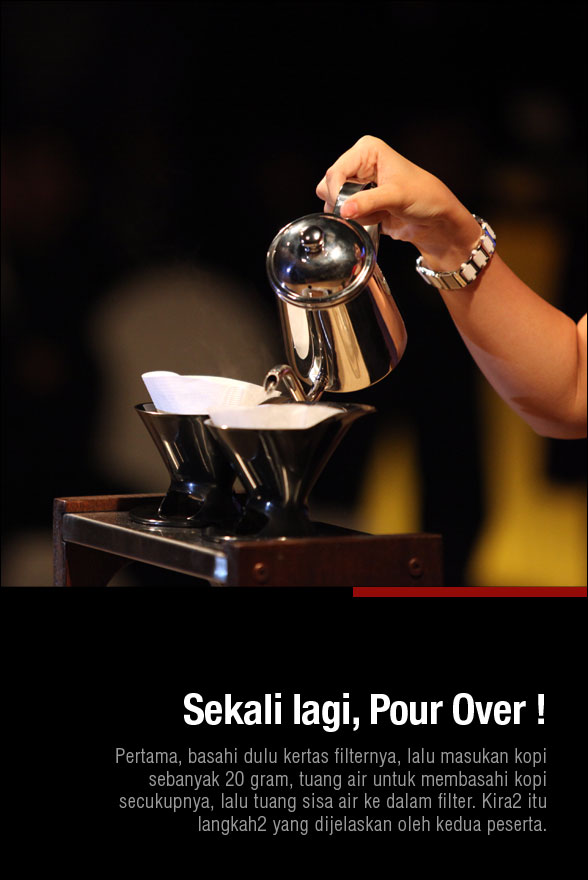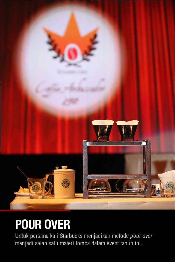 Menarik melihat trend pour over yang menjadi materi kompetisi tahun ini walau belum ada kepastian apakah Starbucks akan menerapkannya di Indonesia. Berbeda dengan french press, metode pour over akan membuat interaksi antara barista dan pelanggan semakin intens dan dengan alasan itulah pengetahuan yang luas tentang kopi menjadi penting.