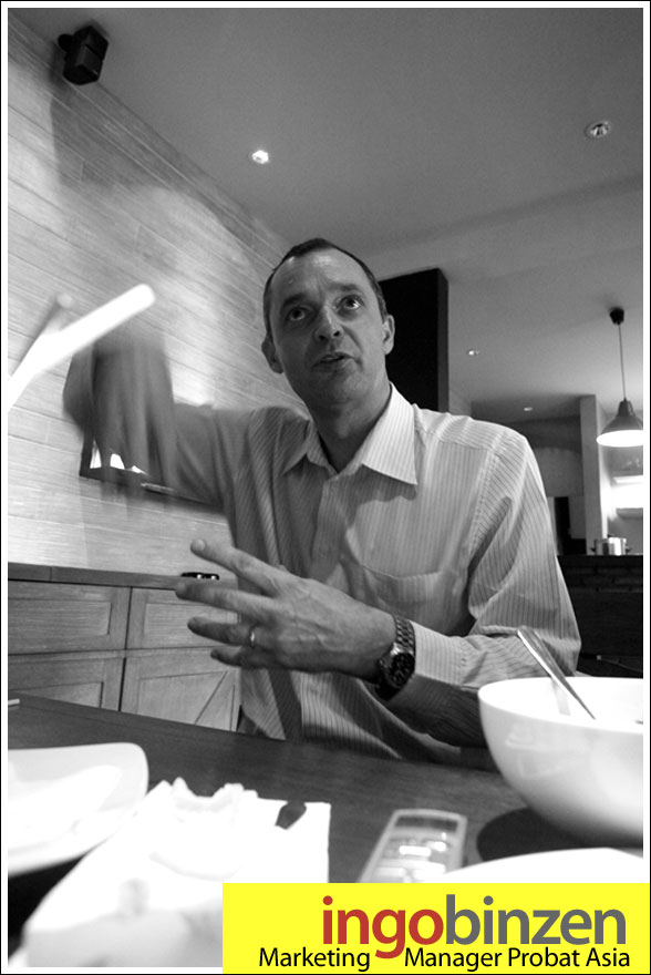 Di sela2 jadwalnya yang padat, Ingo Binzen, dari Probat-Werke, perusahaan mesin roasting dari Jerman menemui saya dalam sebuah perbincangan khusus di sebuah restoran kawasan Tebet Jakarta. Ingo adalah orang yang bertanggung jawab terhadap penjualan Probat di wilayah Asia, sebuah pasar yang terus berkembang. Ia berada di Jakarta mengunjungi beberapa perusahaan pengguna mesin Probat termasuk perusahaan kopi terbesar di tanah air. Selengkapnya obrolan singkat dengan Ingo Binzen.
