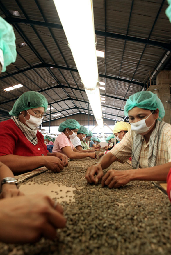 Aku pernah ke berbagai pabrik pengolahan biji kopi untuk di konsumsi di kota Medan, aduuuh klu lihat pasti ente2 gak bakalan mau minum tu kopi, tapi beda banget ama perusahan yg satu ini, pengoalahannya bersih dan rapi mana mesinnya canggih2. pokoke like this lah..