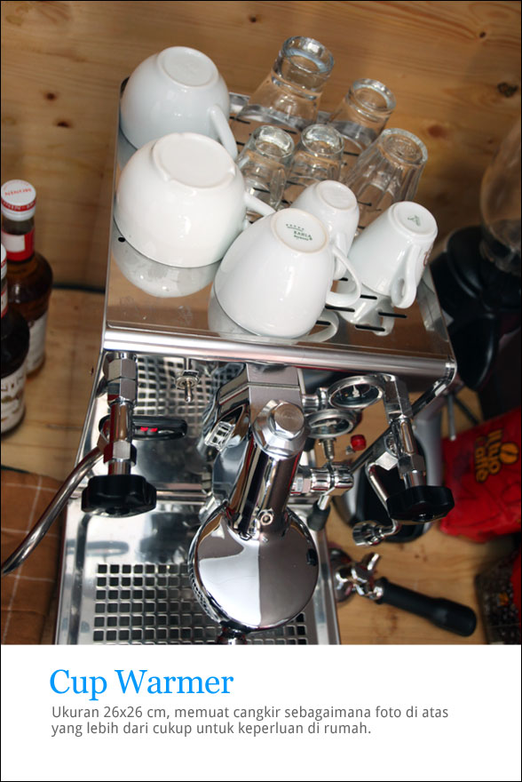 Bagian ini keluhan yang sering saya bicarakan dengan para distributor. Banyak produsen mesin espresso melengkapi mesinnya dengan tamper plastik atau sendok kopi untuk mengakomodasi pembeli yang belum mempunyai tamper atau grinder. Khusus untuk tamper, pada mesin sekelas ini, rasanya sangat wajar untuk menyertakan sebuah tamper yang layak demi kenyamanan pengguna dalam paket pembelian. Sendok kopi ? kelengkapan ini saya gunakan untuk menyeduh kopi tubruk.