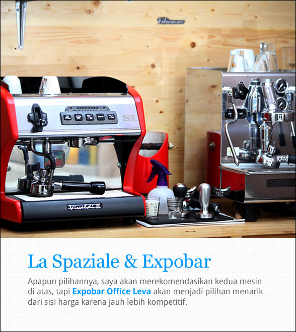 “Expobar bisa dijadikan pilihan bila untuk keperluan light commercial untuk maksimal 20 cup per jam nya. Di pasaran masih banyak alternatif lain seperti Vibiemme Domobar, La Spaziale Vivaldi II, atau Giotto dari ECM.”