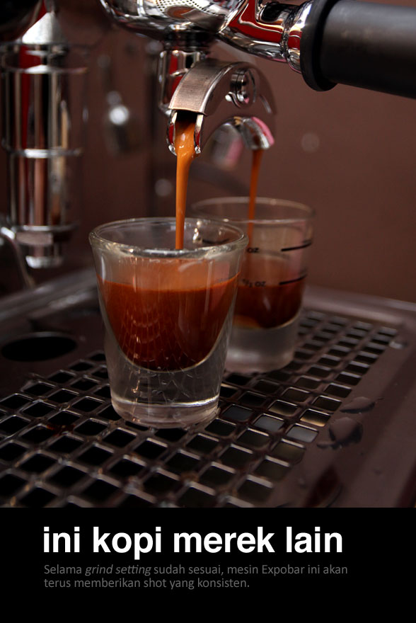 Sekaligus juga ingin membalas email2 yang tak terhitung jumlahnya mengenai mesin apa untuk yang akan membuka cafe kecil. Expobar bisa dijadikan pilihan bila untuk keperluan light commercial untuk maksimal 20 cup per jam nya. Di pasaran masih banyak alternatif lain seperti Vibiemme Domobar, La Spaziale Vivaldi II, atau Giotto dari ECM. Semuanya mesin yang bagus dan sudah saya gunakan serta tidak akan terkendala layanan purna jual karena distributornya menyediakan perbaikan bila terjadi kerusakan yang biasanya jarang terjadi.