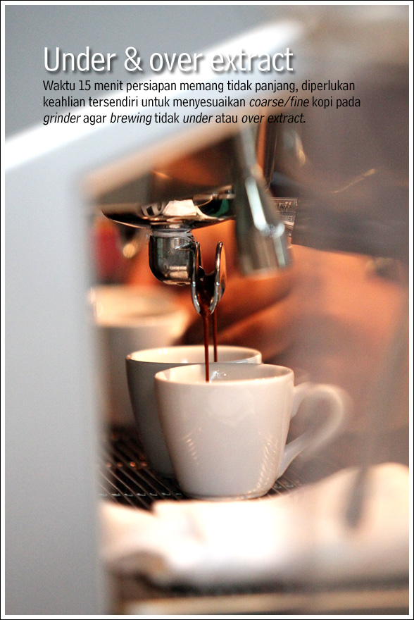 Tapi mungkin saking tegangnya dan takut kehabisan waktu, ada juga peserta yang menyuguhkan racikan signature drink tapi terlupa mencampurnya dengan kopi. Under dan over extraction saat membuat espresso adalah hal yang juga sering terlihat pada saat lomba dan membuat para juri sensory (perasa) harus lebih “bekerja keras” dalam menjalankan tugasnya.