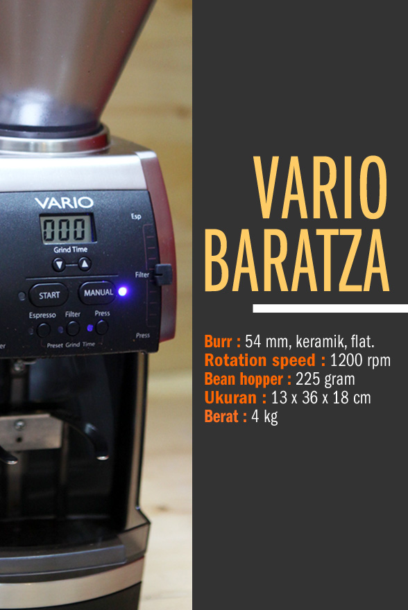 Semoga Anda tidak pernah bosan dengan passion saya terhadap alat penggiling kopi selain berbagai “mainan” kopi lainnya. Ini Baratza Vario dari Mahlkönig, sebuah nama besar produsen grinder berkualitas selain Mazzer yang punya pengalaman selama 80 tahun. Kalau boleh diibaratkan, Mahlkönig, itu seperti mobil Mercy-nya dalam dunia penggiling kopi, berkualitas sekaligus berkelas, lifetime ownership, walaupun harganya selangit. Tapi berbeda dengan jajaran grinder lainnya, Baratza Vario dipasarkan dengan harga yang relatif terjangkau bagi yang ingin mendapatkan alat penggiling kopi sekelas grinder komersial