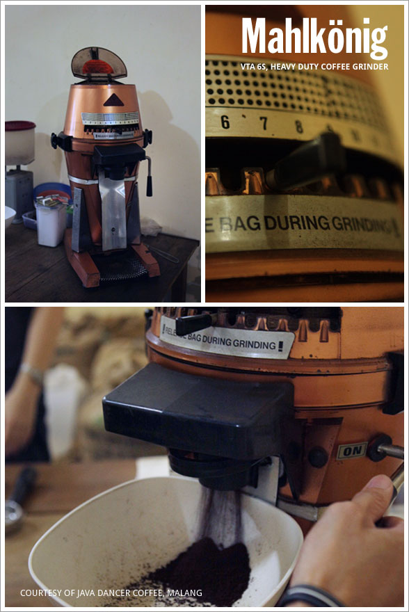 Sebelum mengulas Vario, ijinkan saya berbagi pengalaman pengalaman pertama bertemu dengan grinder Mahlkönig tipe heavy duty saat kunjungan ke Java Dancer Coffee, di kota Malang Jawa Timur. Grinder yang berwarna oranye menarik perhatian karena bentuknya seperti roket dan jangan coba2 mengangkatnya, 44 kilogram!. Dengan mata pisau 120mm, Mahlkönig tipe pekerja berat ini enteng saja menggiling kopi 250 dalam sekejap mata. Mungkin sejak saat itu Mahlkönig sudah mulai bertengger di kepala saya sebagai next wish list, yang entah kapan terwujudnya.