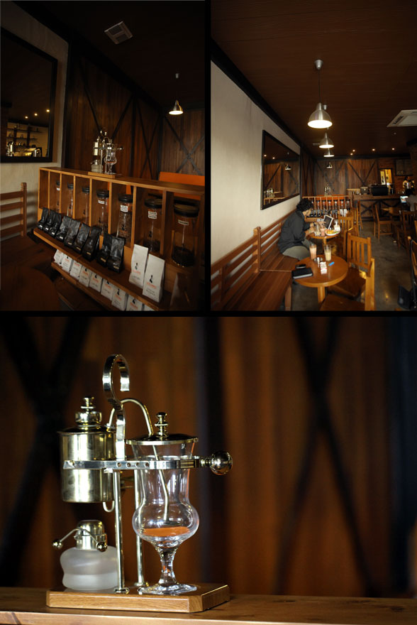 Interior JCF bernuansa kental memadukan nuansa country dan gudang kopi yang didominasi oleh dengan furniture kayu. Di depan terdapat mesin roaster merek Arkaneks (pernah saya posting) sebelum mesin dengan kapasitas yang lebih besar tiba beberapa bulan lagi. Ruangan cafe berkisar 6×10 meter dibuat tanpa sekat dengan hiasan berbagai pernik alat seduh kopi dari pour over hingga Royal Belgian Coffee Maker.