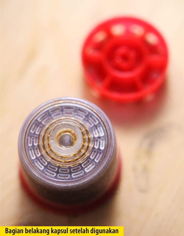 O, iya, semoga karena masih dalam pemapanan yah sehingga setiap produsen mesin hanya mengeluarkan kapsul kopi yang hanya cocok untuk mesin yang diproduksinya. Barangkali ke depan semoga semua kapsul bisa kompatibel dengan mesin mana pun.