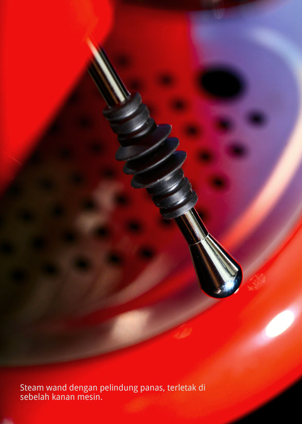 Hanya melakukan frothing sedikit agak kagok karena steam wand yang terlalu pendek dengan pergesaran yang kurang nyaman untuk mendapatkan sweet spot, jadi saya harus banyak berlatih untuk yang satu ini. Waktu jeda antara brewing ke steam sekitar 1.5 menit.