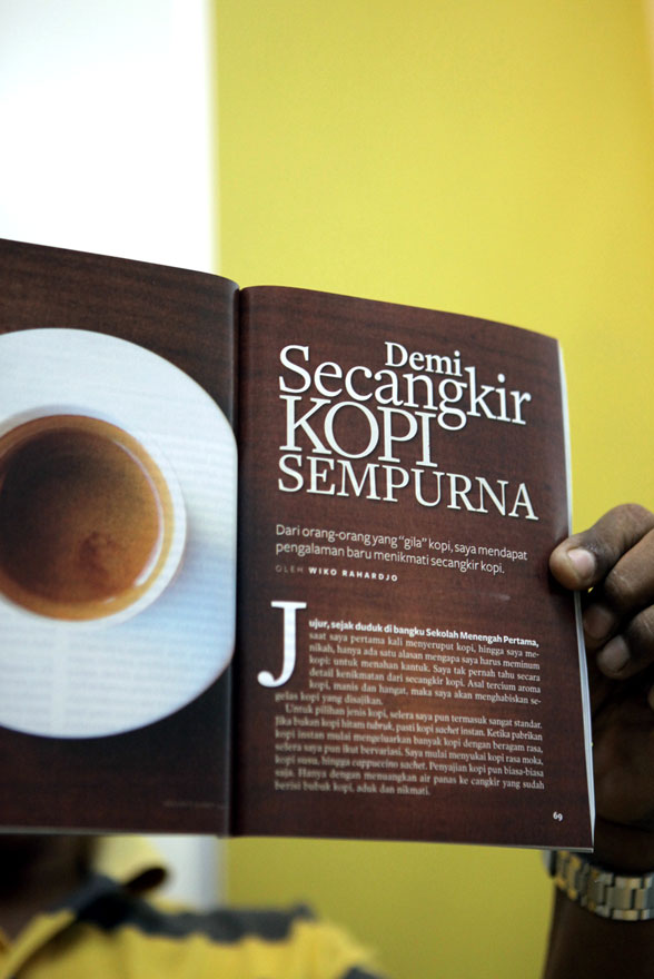 Beberapa minggu lalu, Wiko Raharjo, wartawan Reader’s Digest menghubungi saya untuk sebuah wawancara, apalagi kalau tidak berkaitan dengan kopi. Ini liputan kesekian kalinya dari media massa cetak tentang aktivitas saya di dunia kopi Selain saya, Franky Angkawijaya, Barista guru juga ditampilkan dalam artikel yang berjudul “Demi Secangkir Kopi Sempurna” yang membahas ritual pembuatan espresso.