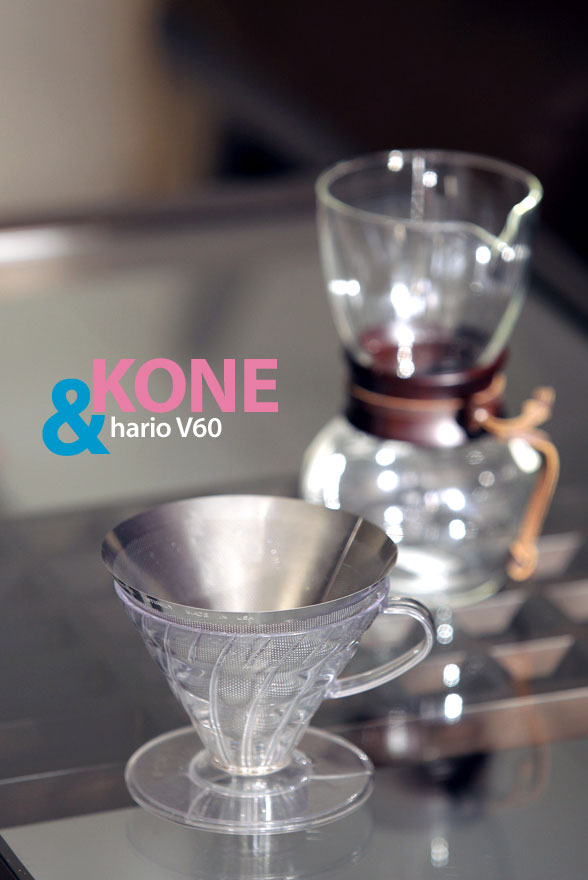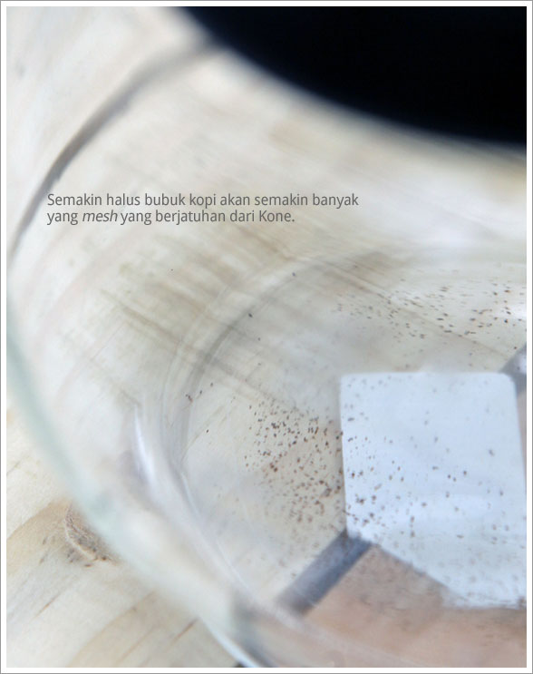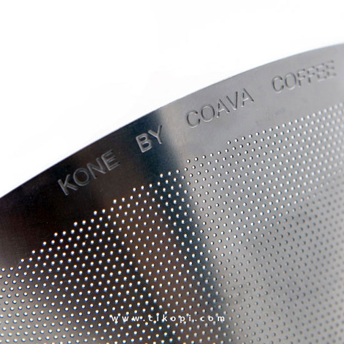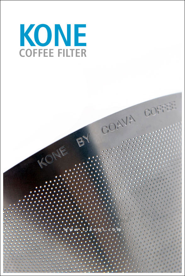 Material kertas memang media yang baik dalam urusan menyerap minyak atau lemak demikian pula dengan filter kopi yang terbuat dari kertas, baik itu yang putih (bleach) atau agak kekuningan (non-bleach). Kedua, kertas bisa menambahkan flavor yang tidak dikehendaki dalam kopi yang kita seduh selain tentunya tidak ramah lingkungan karena filter kopi hanya bisa digunakan untuk satu kali proses menyeduh lalu dibuang. Terakhir pada penggunaan filter kopi misalnya pada alat Hario V60, air hanya mengalir keluar melalui ujung filternya, tapi pada Kone air bisa mengalir kemanapun yang dikehendaki pada banyak lubangnya. Paling tidak, alasan2 tersebut memberikan ide bagi Coava Roaster yang kemudian menciptakan Kone, filter kopi dari bahan stainless yang chic dan kemudian menjadi hits di Amerika.