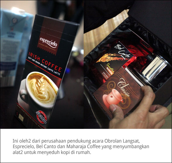 Para undangan yang hadir menyimak penjelasan Vabyo (@vabyo) yang punya banyak resep kopi untuk dicoba di rumah dengan bahan yang mudah didapatkan. Berbagai racikan kopi dan rasa didemonstrasikan pembuatannya lalu yang hadir pun bisa mencoba trik ngopi ala Vabyo yang kondang di dunia Twitter. Itulah sekilas Obrolan Langsat dengan tema Bincang Kopi yang kali ini mengambil tempat di kota Bandung bersamaan dengan acara Indonesia Barista Competition pada hari Kamis, 24 Februari lalu. Ina Muwarni, Direktur Eksekutif Specialty Coffee Association of Indonesia berkenan hadir dan menyaksikan acara dari awal hingga akhir.