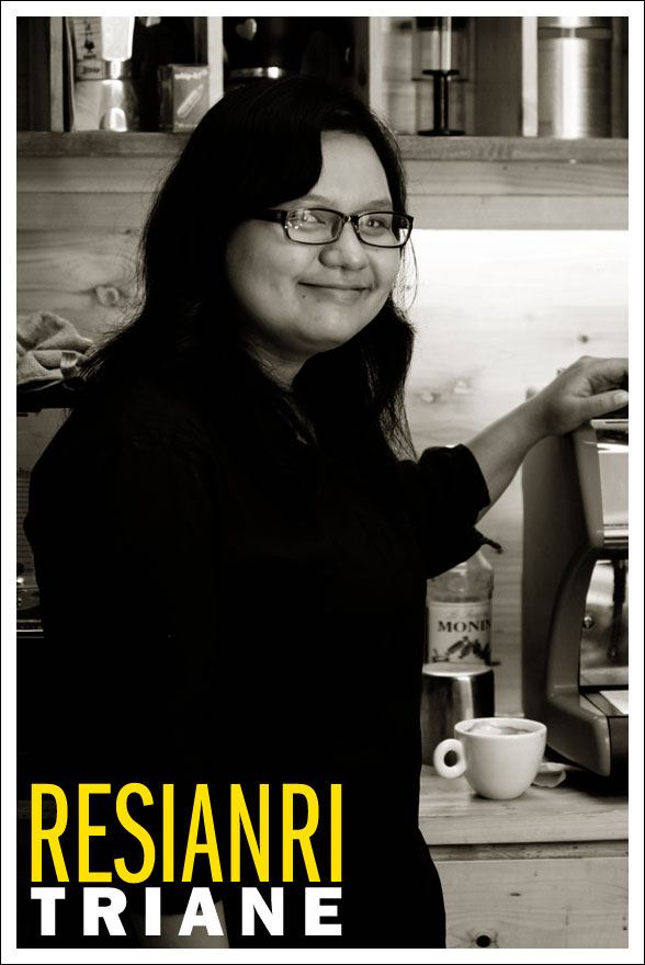 Bagi yang belum mengenalnya, di usianya yang masih 24 tahun, Resi sudah menyabet sertifikasi Q Grader yang diperolehnya di tahun 2009 dalam pelatihan selama satu minggu di kota Medan. Ia merupakan 1 dari 7 Q Grader perempuan yang dimiliki Indonesia. Jadi Anda tentu tidak kaget, karena Resi sudah terbiasa minum kopi sejak duduk di sekolah menengah pertama walau masih terbatas pada kopi yang ia beli di warung terdekat. Juga jangan tanya alat kopi yang ia miliki di rumah, kecuali mesin espresso, hampir semua alat seduh ia miliki walau sehari-hari tetap setia dengan french press dan kopi favoritnya dari Papua. “French press membebaskan oil kopi, elemen penting dalam sebuah karakter kopi” dan saya mengamininya.