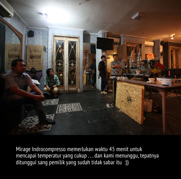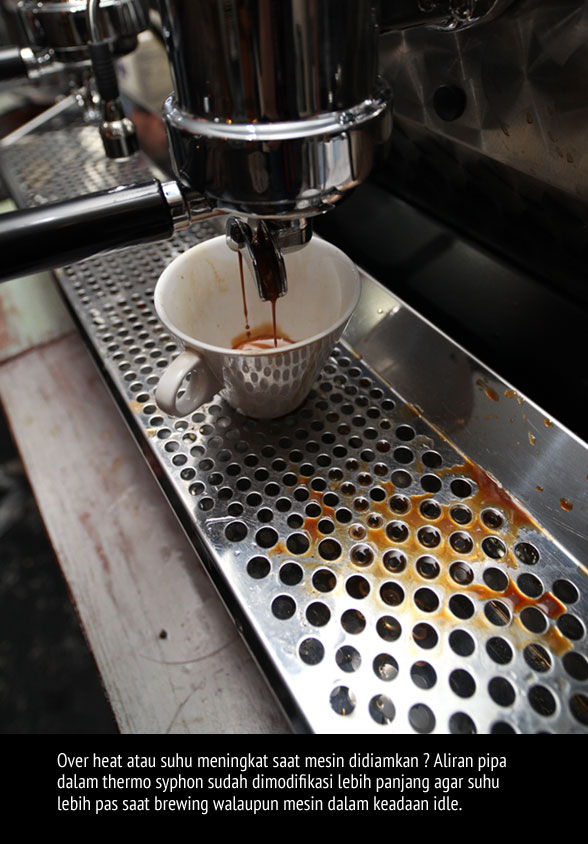 Sebagai informasi singkat, mesin espresso biasanya dibagi menjadi tiga bagian besar, manual, semi otomatis, dan fully automatic. Mesin yang sering saya tampilkan di sini lebih banyak berada pada kategori di tengah atau semi automatic, dan ini kali pertama mesin espresso manual saya angkat. Saya tidak akan membahas secara mendetail perbedaan antara ketiga sistem tersebut, tapi porsi terbesar adalah keterlibatan barista pada acara brewing sebagai perbedaan mendasar selain spesifikasi mesin tentunya. Mesin Kees yang bertipe Mirage Indrocompresso masuk pada kategori manual manakala barista punya peranan dari mulai dosing, tamping, terutama pull a shot, sebuah istilah yang berakar dari penggunaan mesin jenis ini.