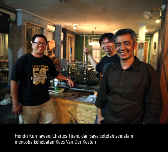 Dipesan oleh Sinou Kaffee Hausen, sebuah cafe di bilangan Jakarta Selatan, tepatnya jalan Panglima Polim V no. 26 yang saat malam tadi cukup sesak dengan pengunjung dari kalangan urban Jakarta. Saya diundang untuk menyaksikan saat-saat bersejarah, sebuah Kees Van Der Westen dibuka untuk pertama kali dan mungkin yang pertama ada di Jakarta. Mohon dikoreksi bila pernyataan ini salah.