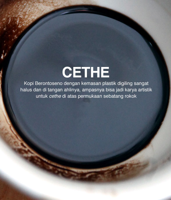 Para artis cethe khususnya di Tulungagung tentu sudah sedemikian akrab dengan kopi Berontoseno yang berfungsi sebagai tinta untuk karya seni mereka di atas kanvas yang berupa sebatang rokok. Kehalusan ampas kopinya mempermudah mereka dalam menggoreskan gambar yang kadang hanya menggunakan sendok kecil atau tusuk gigi.